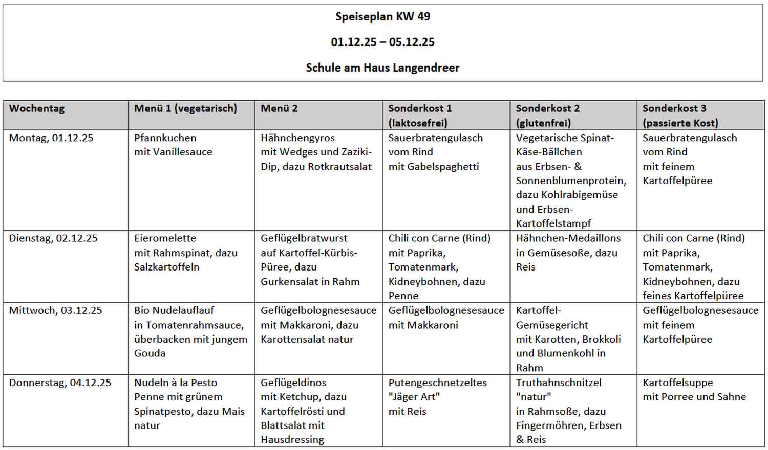 Hier finden Sie die aktuellen Speisepläne der Schule am Haus Langendreer.